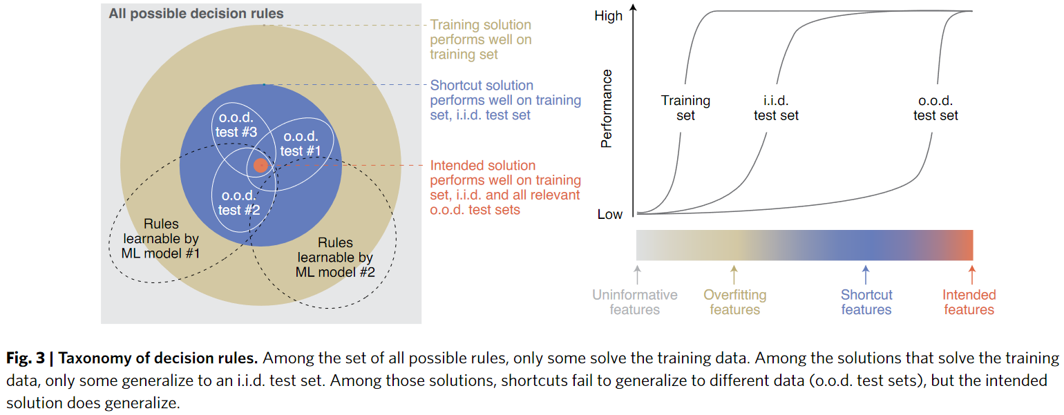 Geirhos, Robert, Jörn-Henrik Jacobsen, Claudio Michaelis, Richard S. Zemel, Wieland Brendel, Matthias Bethge, and Felix A. Wichmann. 2020. “Shortcut Learning in Deep Neural Networks.” Nature Machine Intelligence 2 (11, 11): 665–73. https://doi.org/10.1038/s42256-020-00257-z.