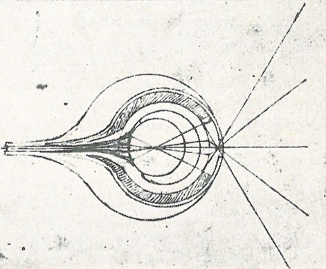 In his Book of Optics, Alhazen rejected the theory that the eye works like a camera obscura, as it would create an inverted image. He also argued that every part of the eye should be close to geometric perfection, since otherwise they would create “monstrous” images like a funhouse mirror. Similarly, da Vinci knew that the pupil acts as a camera obscura, but developed no less than 8 different hypothetical mechanisms inside the eye to re-invert the image again, so the image lands right-side-up on the retina. (Eastwood 1986)