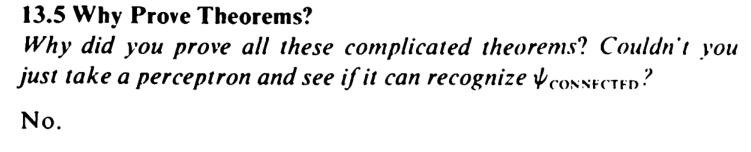 Why did you prove all these complicated theorems? Couldn’t you just take a perceptron and see if it can recognize \psi_{\text {CONNECTED}}?