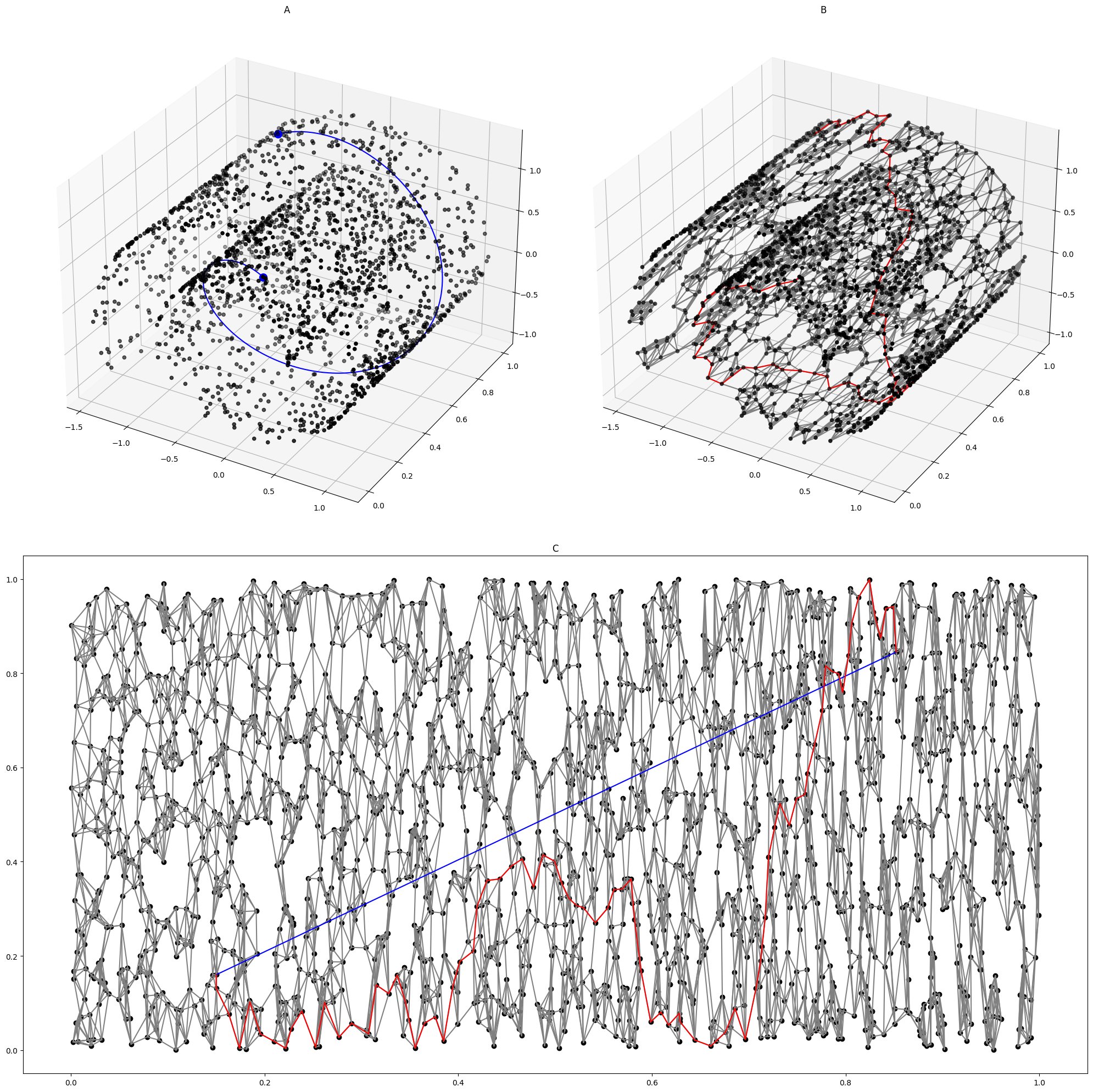 Real data can be expensive, though, which is why we often use “toy” datasets with known dimensions, generated by a known random process. For example, the following is the “Swiss roll” dataset. It is generated by first populating a 2D square [0, 1]^2, then use a function f: \mathbb R^2 \to \mathbb R^3 to “roll up” the square into 3D space.