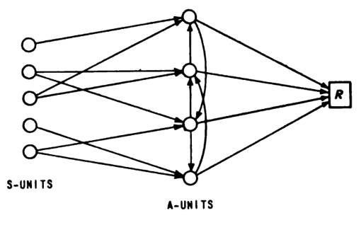 Rosenblatt, Frank. 1958. “The Perceptron: A Probabilistic Model for Information Storage and Organization in the Brain.” Psychological Review 65 (6): 386. https://doi.org/10.1037/h0042519.