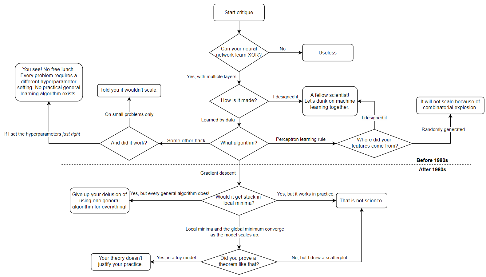 Marvin Minsky insisted for decades that large neural networks do not work in theory (as we saw), so it only appears to work in practice.